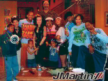 Custom airbrushed shirts designed for the cast of Will Smith’s TV show All of Us, created specifically for the “Old School” themed episode. A signature JMartin Designs production collaboration.